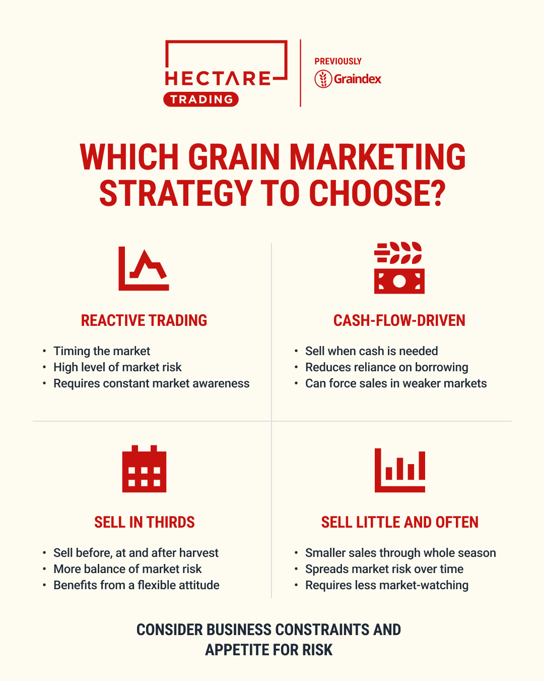 What approach do you take to grain trading? Before you build out a detailed plan and selling schedule, it’s worth stepping back to think about your higher-level strategy – and whether it genuinely suits both your business and your personality.