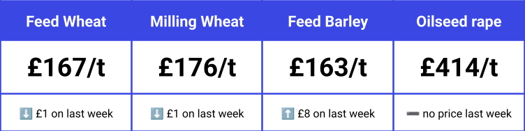 Midlands feed wheat falls back to £167